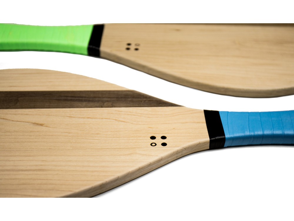Beach rackets handmade in our workshop in Hong Kong. Made with maple and walnut, waterproof coated for extra durability. Each pair comes with two balls and an organic cotton tote bag for extra convenience!